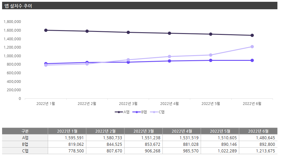 내 앱(+경쟁사 앱)의 월 별 설치수